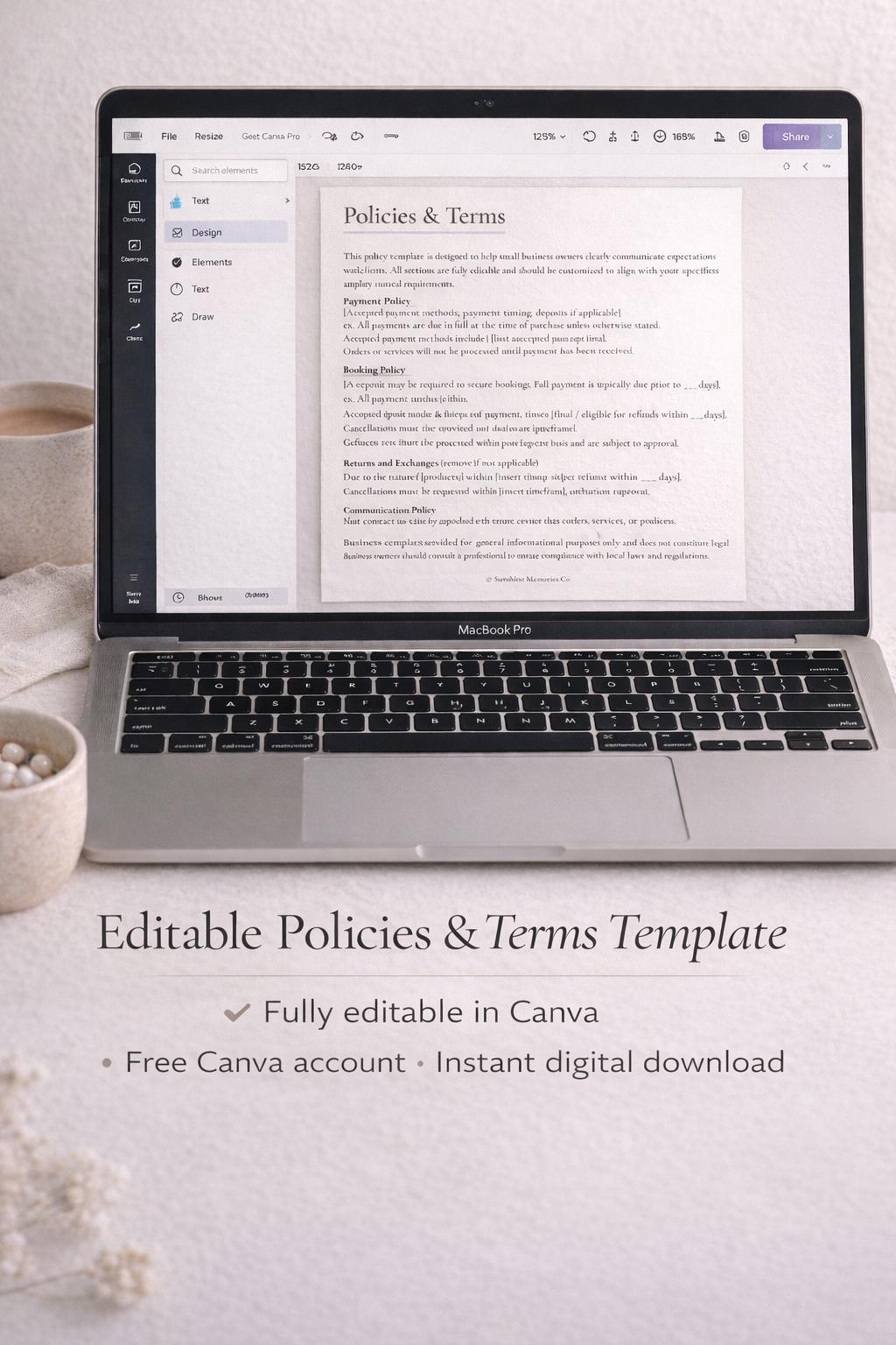This listing includes 1 fully editable Policies & Terms template, designed for general small business use.