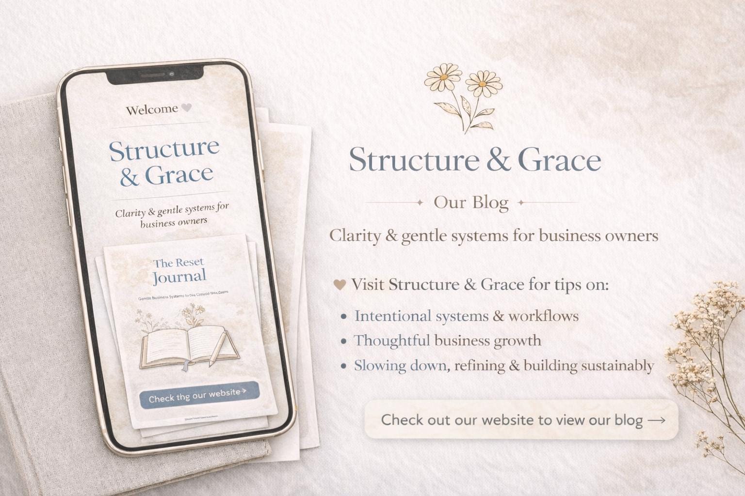 Structure & Grace is a content and guidance space within The Sunshine Memories. It Includes our blog a philosophy—focused on thoughtful decision-making, sustainable growth, and supportive systems. It’s designed to feel like a quiet personal assistant and guidebook you can return to whenever you need clarity.